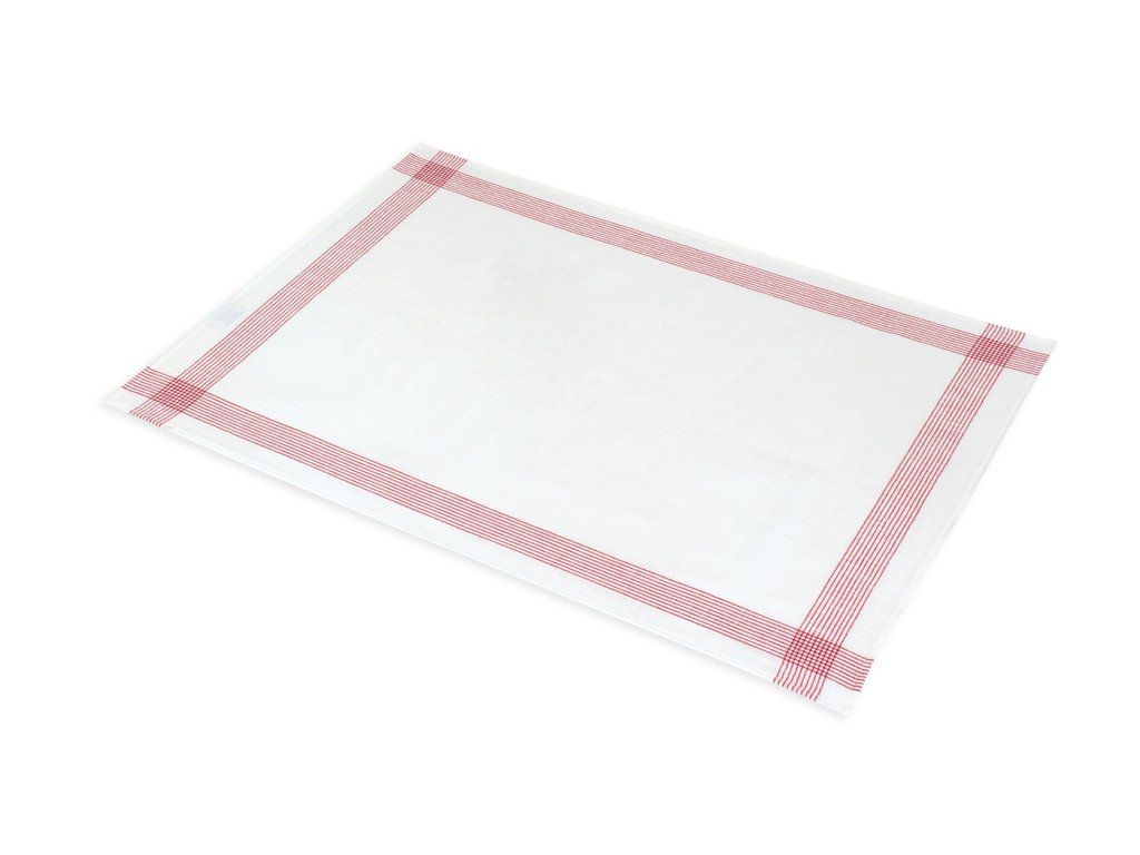 Bílá - červené linky - Len 100% - 2ks