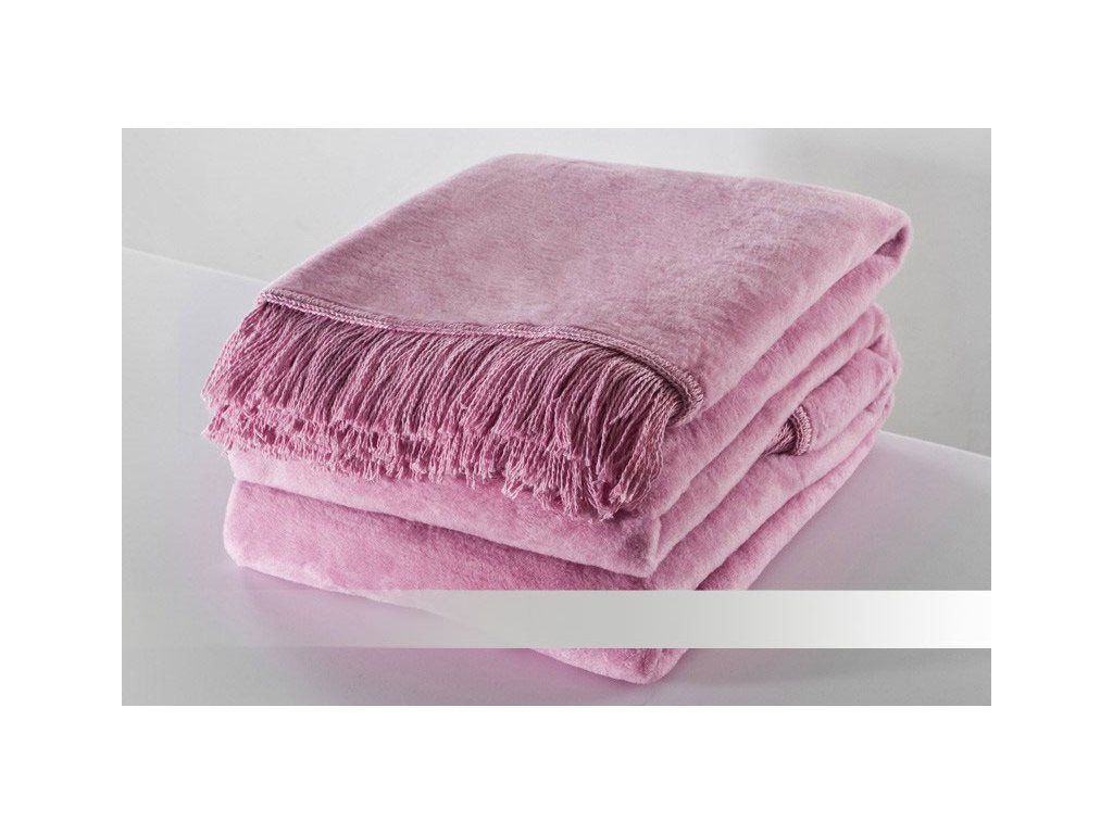 Růžová deka s třásněmi - bavlna