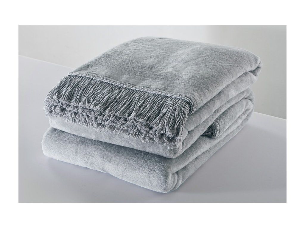 Stříbrná deka s třásněmi - bavlna