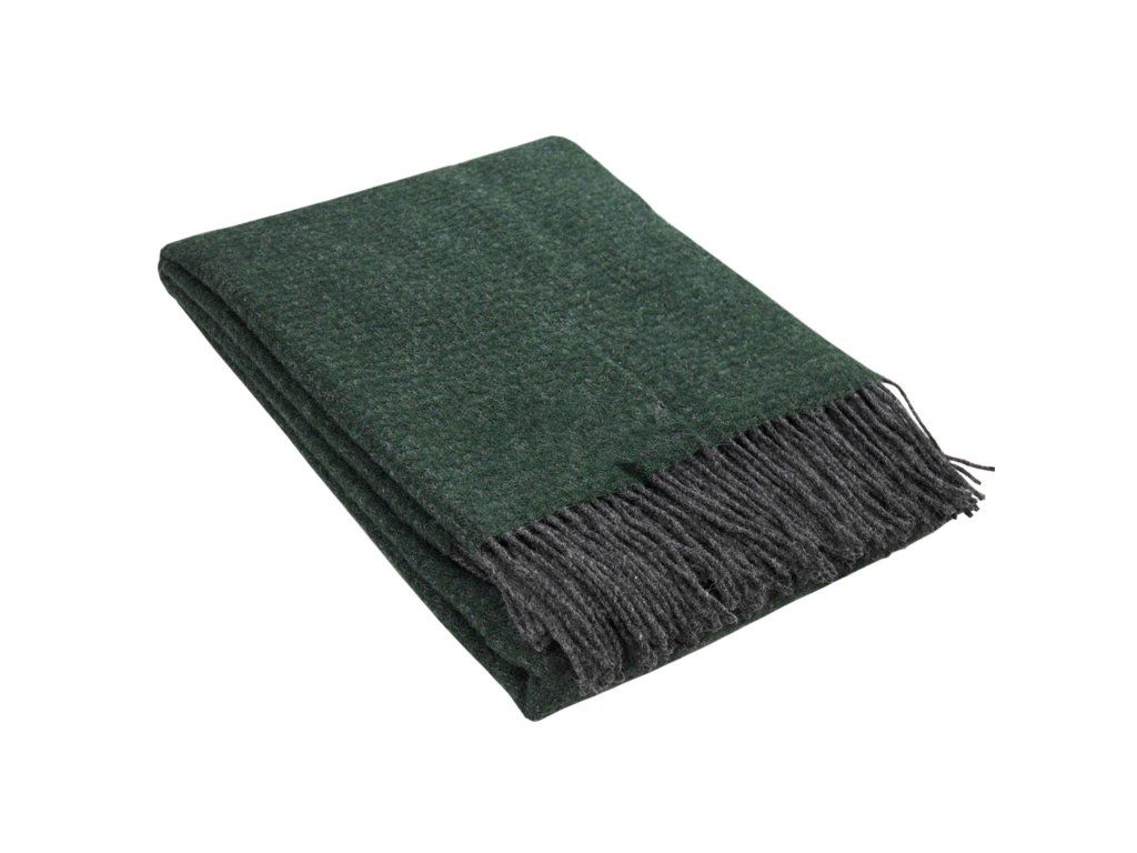 Vlněný pléd tmavě zelený - vzorovaný